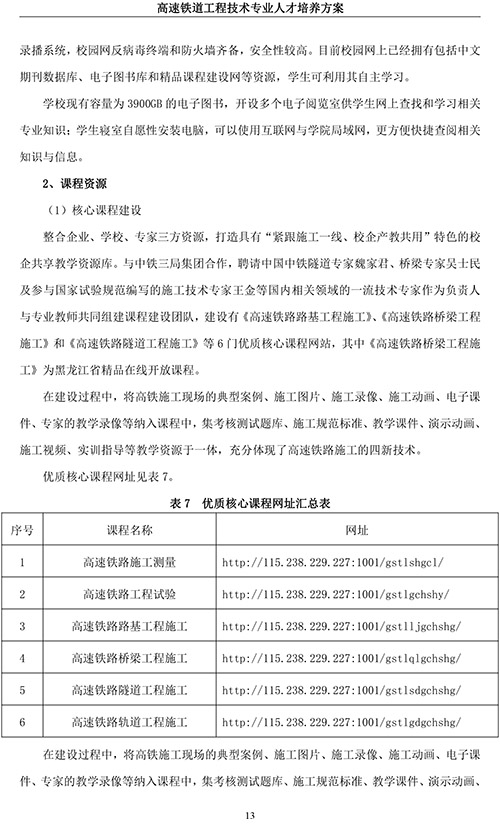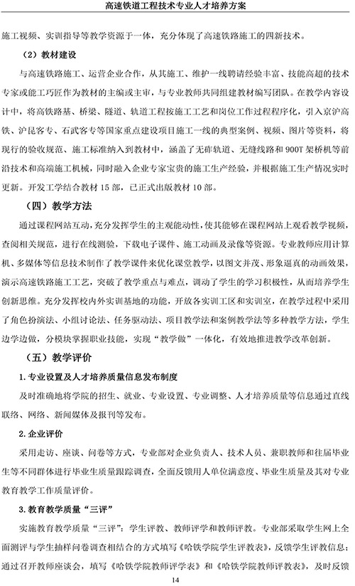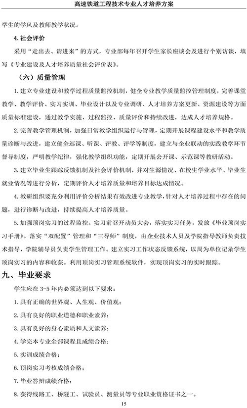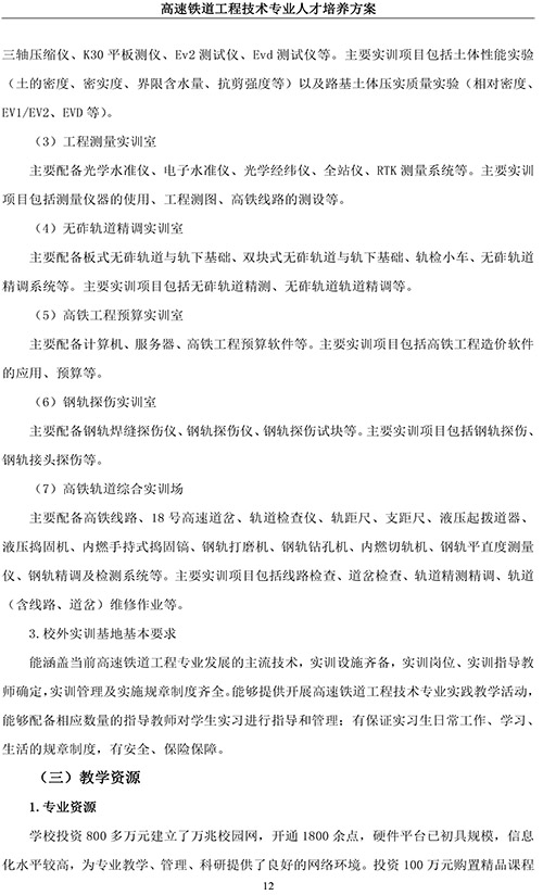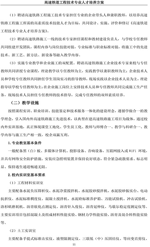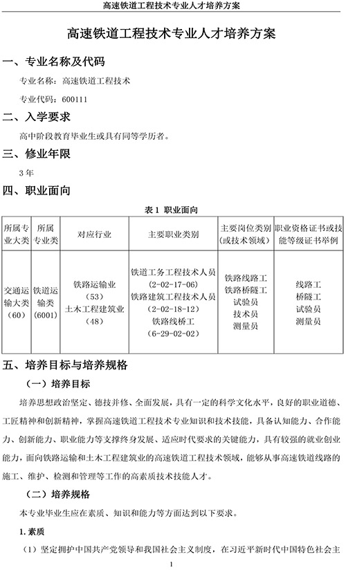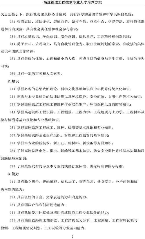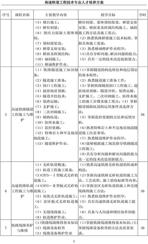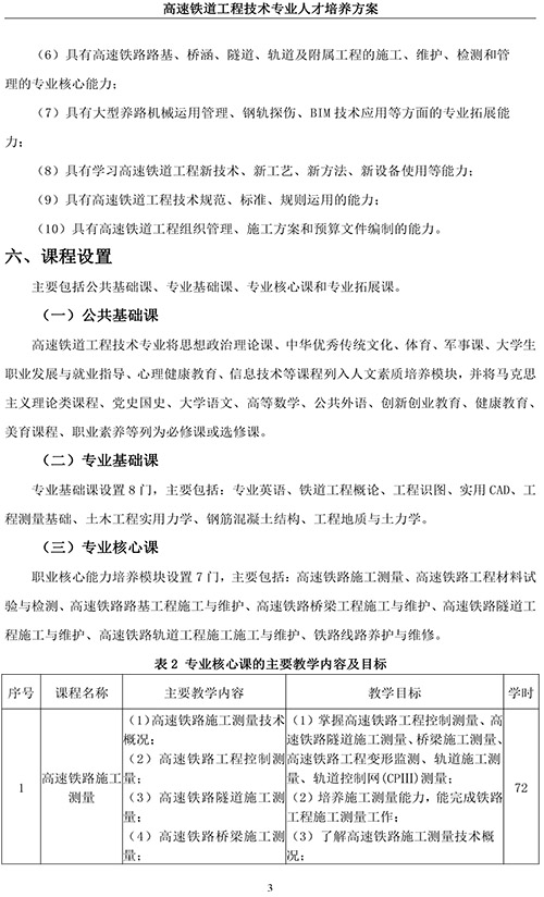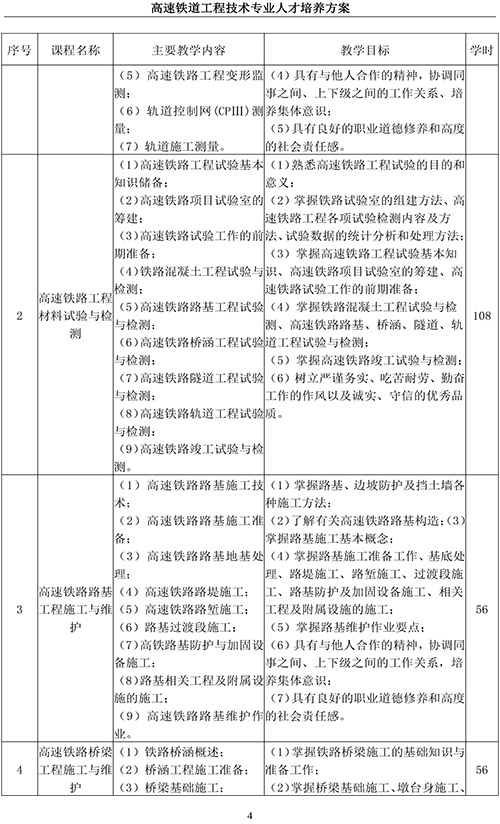 高速铁道工程技术专业人才培养方案