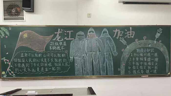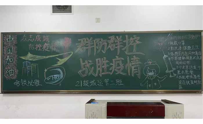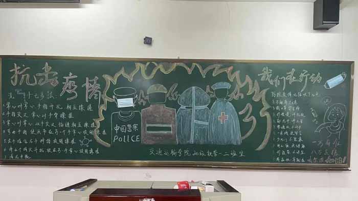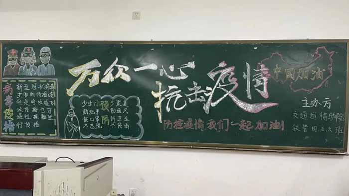 为进一步增强同学们防控新冠肺炎的意识,强化同学们对新冠肺炎疫情防控知识的了解,学习疫情阻击战中涌现的“最美逆行者”的先进事迹,2021年11月7日,交通运输学院团总支在综合楼教室开展了以“群防群控,战胜疫情”为主题的黑板报活动。