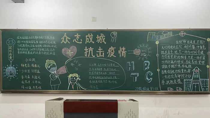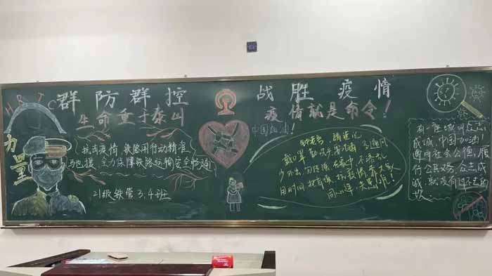 各班积极参与,精心准备,紧扣疫情防控主题,创作出一幅幅主题鲜明、内容丰富、图文并茂、形式新颖的黑板报作品。通过精美的绘画,和详实的文字,展现了各组独特的风采!