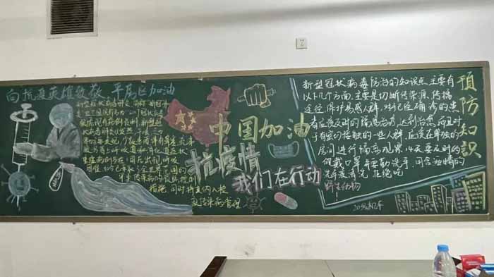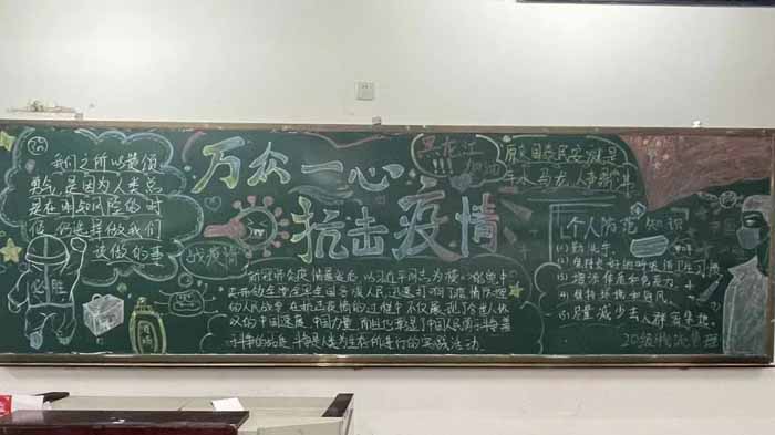 这次活动也得到了学院领导的充分认可。同学们用自己的智慧和巧手,制作出一张张温暖的黑板报。作品不仅色彩丰富、图文并茂、书写美观,还礼赞了最美“逆行者”,表达出对抗击疫情的必胜信心。此次活动,既普及了新型冠状病毒的肺炎防控的相关知识,又培养了同学们的爱国情怀,起到了良好的教育效果。