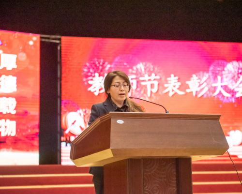 城轨学院教师刘慧玲代表全体教师发言。她号召学院全体教师要珍惜教师这份充满无上荣光职业,要努力争做有理想信念、有道德情操、有扎实学识、有仁爱之心的“四有”好老师。