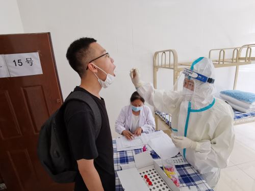 学院党委书记上官凤实地走访了学生报到入口、红外测温区、健康码核验区、学生宿舍、食堂、核酸检测采样等重点区域,认真疏理了学生返校报到、用餐、生活等存在的安全隐患,详细了解测温设施、日常消杀和防疫物资的准备情况,对突发事件的应急处置措施给予了充分关注。