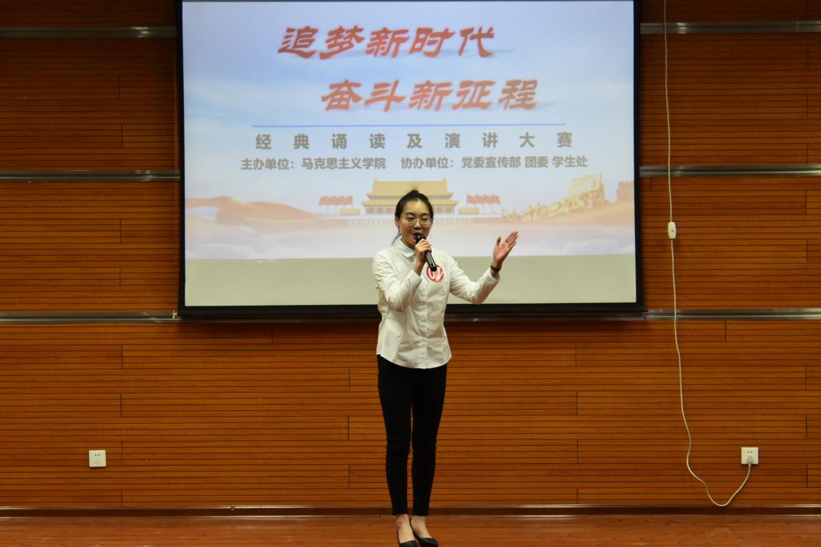 为庆祝祖国七十华诞,激发学生成长成才,报效祖国的热情,12月5日下午,马克思主义学院主办,党委宣传部、团委、学生处协办的“追梦新时代,奋斗新征程”----经典诵读及演讲大赛在图书馆报告厅成功举行。来自5个分院的16名选手,用他们饱含深情的朗诵,铿锵激昂的演讲,演绎描绘了一幅幅新中国七十年的壮丽画卷,为200余名观众呈现了一场精彩的视听盛宴。