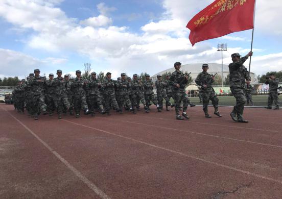 我院军训方队通过主席台