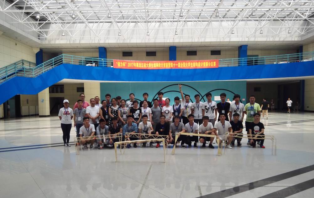 2017年黑龙江省大学生结构设计竞赛暨第十一届全国大学生结构设计竞赛分区赛由黑龙江省教育厅高教处、黑龙江省住建厅科技处、黑龙江省大学生结构设计竞赛委员会共同主办,是培养大学生创新创业能力、动手实践能力、专业技能拓展的重要平台。本次竞赛的赛题为“管道跨越桥模型制作与测试”,以管道跨越工程中桥梁系统结构为背景,采用502胶水和竹材,制作桥梁结构模型并进行加载试验,评委会根据计算书、现场表现、加载效果得出最终成绩。此次竞赛是历届结构设计竞赛中跨度最大、结构最复杂的一次。