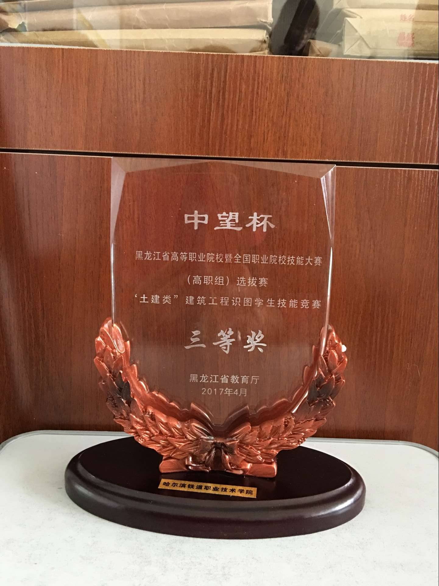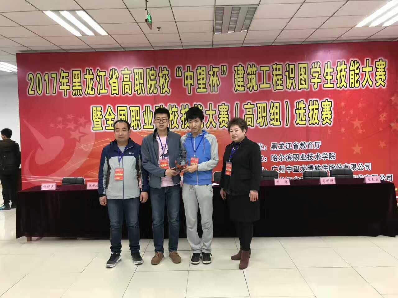 2017年4月15日,在哈尔滨职业技术学院举行的黑龙江省高职院校"中望杯"建筑工程识图学生技能大赛(高职组)选拨赛现场传来喜讯,我院建筑工程技术专业学生石勇浩、岳朝辉(指导老师陈惠哲、冯浩龙)荣获团体三等奖。