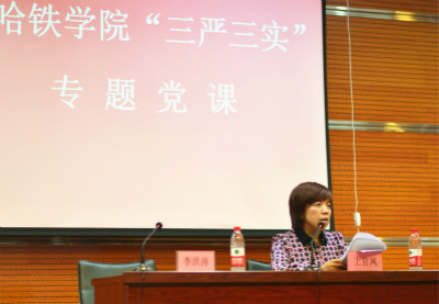 9月24日下午,beats365官网“三严三实”专题党课在学院图书馆报告厅举行,工会主席李洪涛主持会议。学院党委书记上官凤作了党课报告,并就学院开展“三严三实”专题教育的有关安排和要求作出部署,这也标志着学院“三严三实”专题教育正式启动。学院领导班子成员、机关全体干部、其他系统正科级以上干部、各专业部部长、全体辅导员参加了会议。