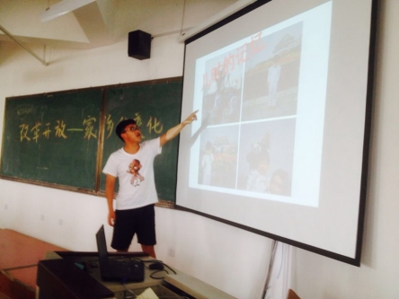 回望祖国大地,改革开放已经走过了37年。30多年来,相信我们每个人,都真真切切地目睹和感受到了我国经济的快速发展,综合国力的提高,人民生活的改善。本次实践活动要求学生以《改革开放给我家带来的变化》为主题,进行社会调查,将调查结果写成调查报告或制成ppt展示。这一活动是从第九周开始的,活动范围辐射到了一年级的每一个教学班,参加人数达 1800人左右,从安排任务、指导学生、修改作业到优秀作品筛选、评比、展示共历时三周,评选出优秀作品120份,其中68人分别获一、二、三等奖。