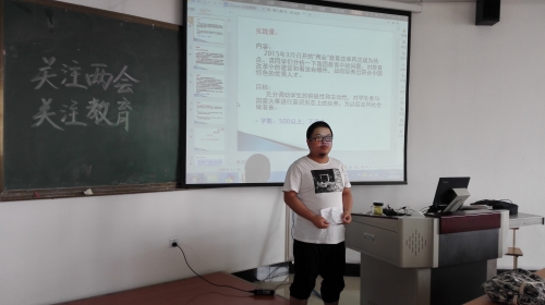 为了充分调动学生的积极性和主动性,提高学生参与国家大事的意识,思政课实践活动四针对“两会”教育热点问题专门做了一场“中国教育”专题讲述活动。此次活动自5月25日开始历时两周,涉及全体大一学生。