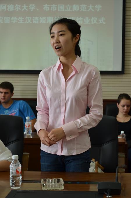 学院新闻 首页 > 新闻中心 > 学院新闻 > 正文 俄罗斯留学生圆满完成在我院各项交流学习活动 作者:日期:2013-07-02 (beats365官网消息)6月29日上午9时30分,俄罗斯留学生交流学习的结业仪式在学院IT会议室举行。院工会主席李洪涛、党委宣传部部长王秋刚、团委书记马绍南、人事处处长张勇、计算机学院院长崔玉波,出席了结业仪式,仪式由院办张智韬主持。 结业仪式上,俄罗斯师生踊跃发言,用中文向大家介绍一周来的所见、所感。他们感谢学院对他们的热情、细致的安排,感谢每一位老师为他们精心准备的课程,感谢每一个家庭为他们准备的美食和礼物,感谢每一位工作人员的辛劳付出。 结业仪式上,工会主席李洪涛代表学院讲话,并为来自俄罗斯的留学生颁发了汉语和高速铁道培训结业证书。院党委宣传部部长王秋刚、团委书记马绍南代表我院赠送阿穆尔大学刺绣富贵花开一幅。院人事处处长张勇、计算机学院院长崔玉波代表我院赠送布市国立师范大学孔子学院刺绣锦鲤一幅。 细雨微蒙,19时许,来自俄罗的师生与相处近一周的中国老师们依依惜别踏上了归程的列车。 此次活动取得了圆满的成功,不仅交流学习了中俄文化,加强了中俄师生的联系,更加深了中俄院校之间的合作,结成了深厚的友谊。相信在中俄年青一代的共同努力下,中俄两国会有更美好的未来。 附:在结业仪式上的讲话 各位老师、同学们,大家上午好! 首先在这里感谢在座的各位,在这短暂的时光里能留给我这么多美好的回忆。 “天下快意之事莫若友,快友之事莫若谈”。犹记7天前,阿穆尔大学和布市国立师范大学孔子学院的师生与我们的第一次见面,那一张张诚挚的笑脸与一颗颗真挚的心如夏日温暖的阳光,渗入心中,无比欢欣。 在这七天中,我们收获了友谊。在老道外中华巴洛克的街道上,我们一同品味着百年的建筑文化;在青砖黛瓦、回廊连环的关东古巷中,我们如穿越回历史重新演绎“闯关东”的故事。在朝夕相处七天里,我们难忘卢春月院长、尤利亚老师和伽利娜老师园丁般的大爱精神,难忘同学们对知识的渴求和对友谊的珍惜,难忘中国学生与大家的坦诚交流,难忘中国老师的真诚付出与充满激情。 在这七天中,我们收获了知识。阿穆尔大学和布市国立师范大学孔子学院的学生在我校学习了传统文明的中国礼仪文化、与时俱进的高铁知识,带有中国特色的中餐文化与巧心妙手的剪纸技术,更熟悉、了解了中国结的制作过程。承载着中华五千年历史的国画书法艺术与太极拳,让各位切实体会到了充满浓郁古典气息的中国风。 在这七天中,我们收获了欢乐。在两校学生的联谊活动中,同学们用真挚的感情架起了友谊的桥梁,整个活动充斥着欢声笑语!在中国家庭做客时,大家相亲相爱宛如一家,空气中满满是亲情! “今日乐相乐,别后莫相忘。”欢乐的时光总是一纵即逝,阿穆尔大学和布市国立师范大学孔子学院的师生们即将结束这次欢乐之旅。时光的流水悄悄消逝,但我们的友谊会与日俱增。虽然我们身居两片国土,但友谊之光必定会普照五洲,大爱之花必将在全球绽放。本次交流活动,我相信这是一个美好的开始,中俄之间的友谊也会地久天长!阿穆尔大学、布市国立师范大学、孔子学院与beats365官网的合作必将扬帆起航,走向辉煌! спасибо всем! 谢谢大家! 俄罗斯留学生发言 俄罗斯留学生发言 一班班主任栾奕发言 二班班主任刘鑫发言 阿穆尔大学伽利娜老师发言 学院工会主席李洪涛讲话 学院工会主席李洪涛代表学院向俄方教师赠送纪念品 工会主席李洪涛向留学生颁发结业证书 党委宣传部长王秋刚、团委书记马绍南代表学院向阿穆尔大学赠送纪念品 学院人事处长张勇、计算机学院崔玉波代表学院向布市国立师范大学孔子学院赠送纪念品