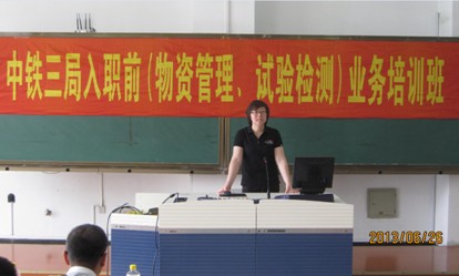 中铁三局集团人力资源部副部长闫念先在开班仪式上做了重要讲话,一方面,介绍了中铁三局2013年上半年的经营生产情况,介绍了开设本次培训班的背景,对学员提出了珍惜机会、回炉提高,认真学习、苦练技能,学有所成、回馈企业三点要求。同时,基于本次培训持续时间长(2个月),培训内容针对性强的特点,闫部长对物资管理培训班、试验检测培训班提出了采用不同技能考核方式的要求。