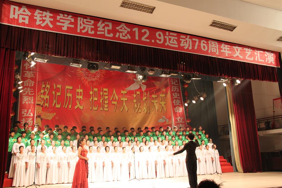 12月5日晚,一台以纪念一二﹒九学生运动76周年为主题的文艺汇演在学院活动中心举行,近600名学生演员用他们充满激情的表演为广大师生呈现了一场精彩纷呈的演出。