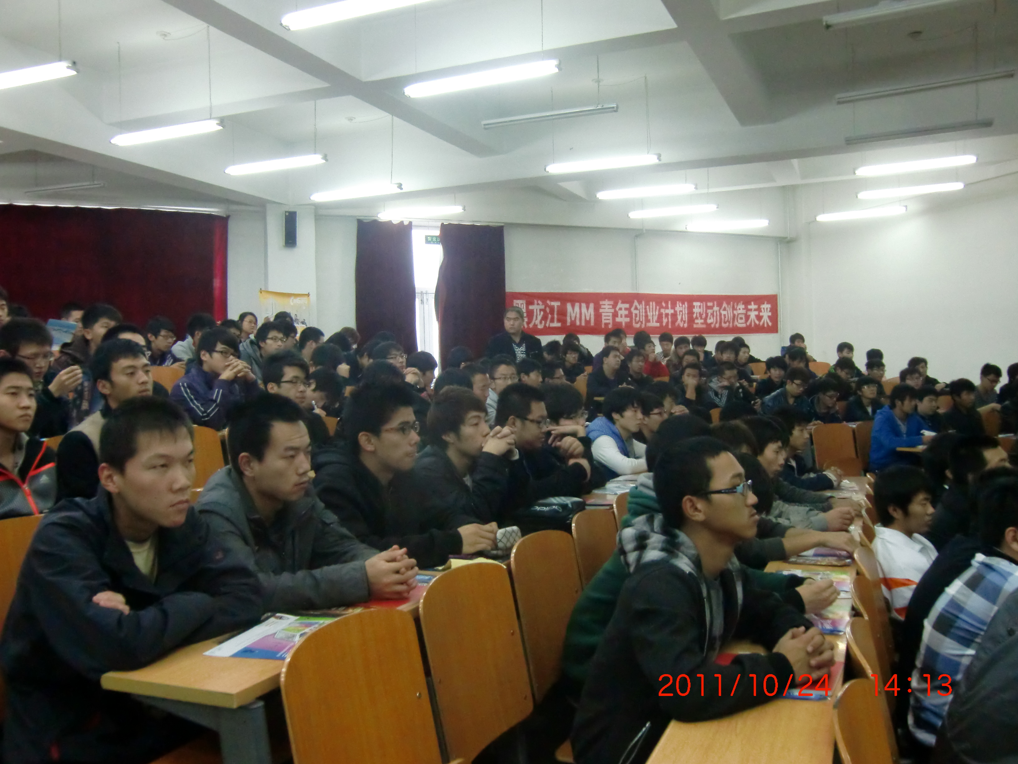 10月24日下午,由共青团哈尔滨市委员会主办的大学生就业创业服务进校园活动在我院综合楼302教室举行。
