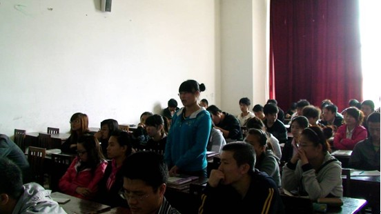 在交流中任春香介绍了建筑装饰行业的现状和岗位职业要求,引用了 “再生的雄鹰”刘伟断臂练钢琴的感人故事启发学生(东方卫视“中国达人秀-刘伟的琴声感人”的视频)。她提出的“20-30岁 你拿这10年做什么?”、“工作定位”、“就业择业观念”等问题,引起了学生们的极大兴趣,大家积极地展开了交流: