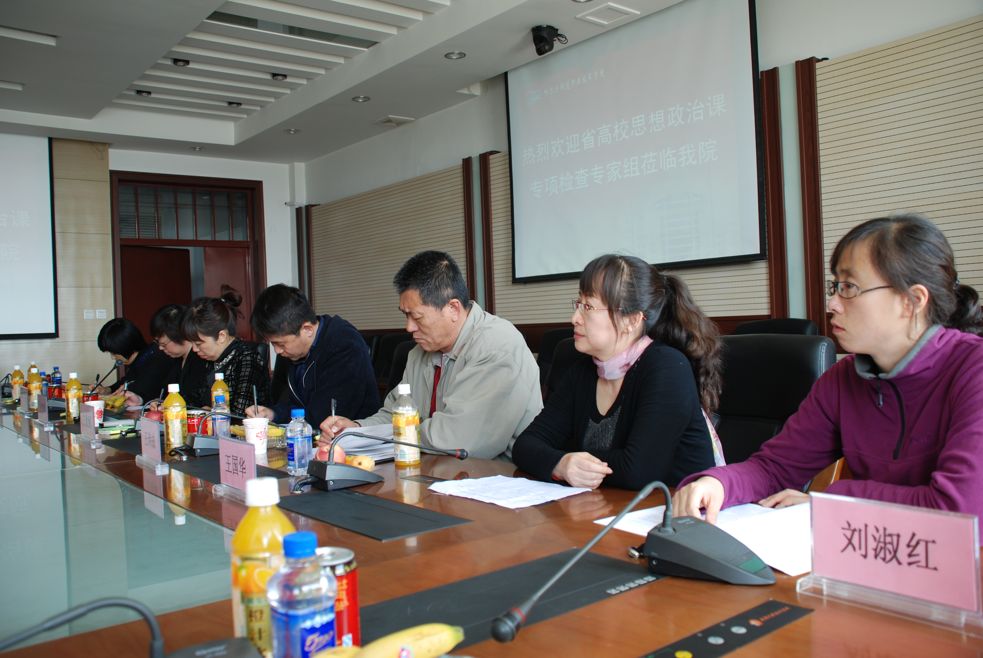 学院新闻 首页 > 新闻中心 > 学院新闻 > 正文 省高校工委检查组来我院检查思想政治理论课建设工作 作者:日期:2011-05-24 (beats365官网消息)5月19日,以哈尔滨医科大学原党委书记沃振中为组长,协同哈尔滨工程大学思政组主任姜相志、哈尔滨师范大学马克思主义学院院长李庆霞、黑龙江省高校工委思政部部员杜海军为成员的省委高校工委检查组来我院检查思想政治理论课建设工作。学校党委书记上官凤、学院副院长李颖、学院宣传部部长王秋刚、基础教育分院院长王玮成、教务处处长王洪章、马列教研部部长朱旭等出席会议。 副院长李颖主持了会议,党委书记上官凤代表学院致欢迎辞。随后,各位专家观看了学院宣传片,认真查阅了学院思想政治理论课建设工作档案材料,分别召开了教师座谈会和学生座谈会。深入到班级听取了专业教师的政治课教学情况,并就这次检查与学院领导进行了反馈交流。最后上官凤同志代表学院领导班子表态发言,对专家组成员严谨、认真、负责、科学的工作态度表示钦佩,感谢专家提出中肯意见,在今后的工作中坚决贯彻专家组提出的整改意见,感谢专家对学院发展给予的支持帮助。
