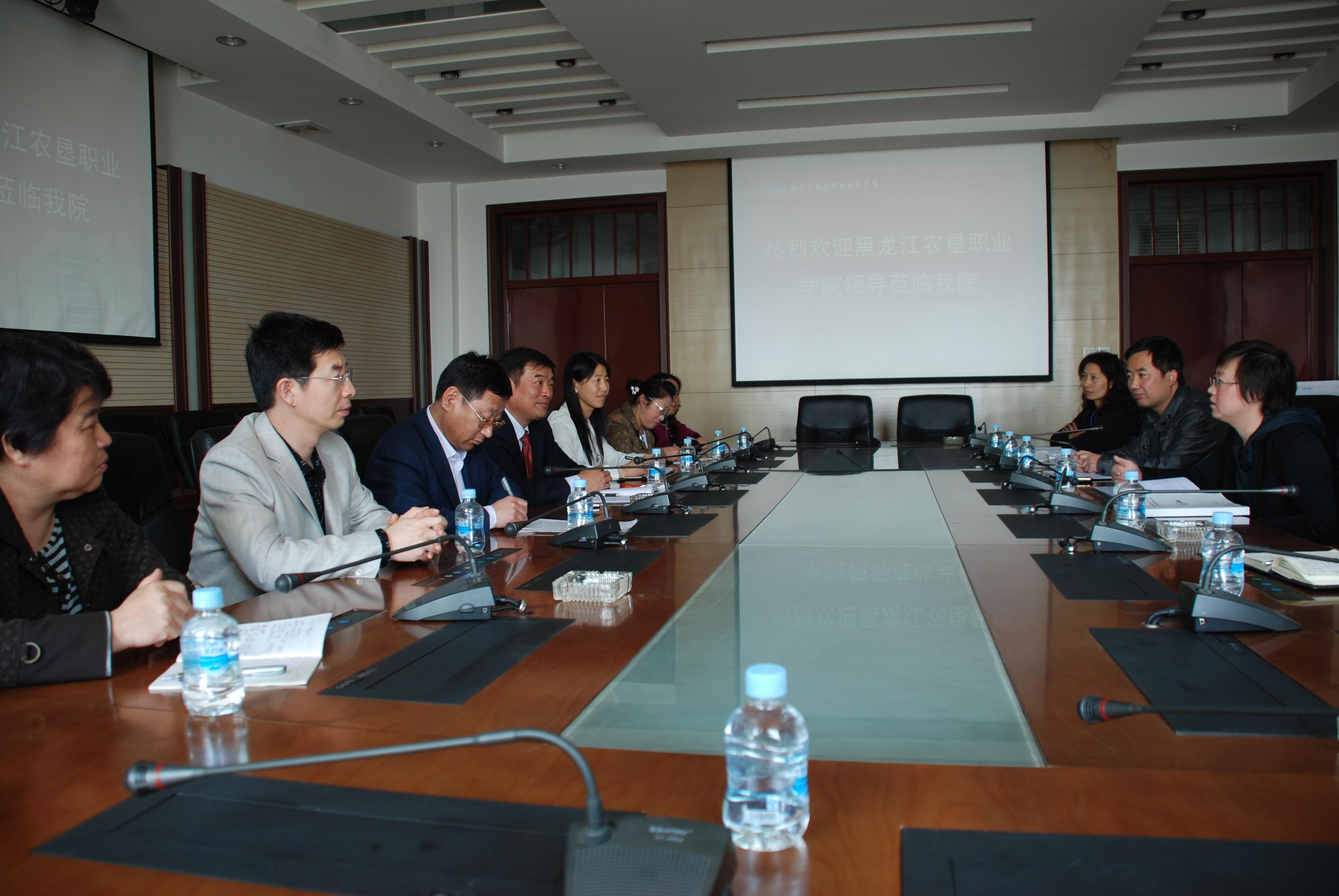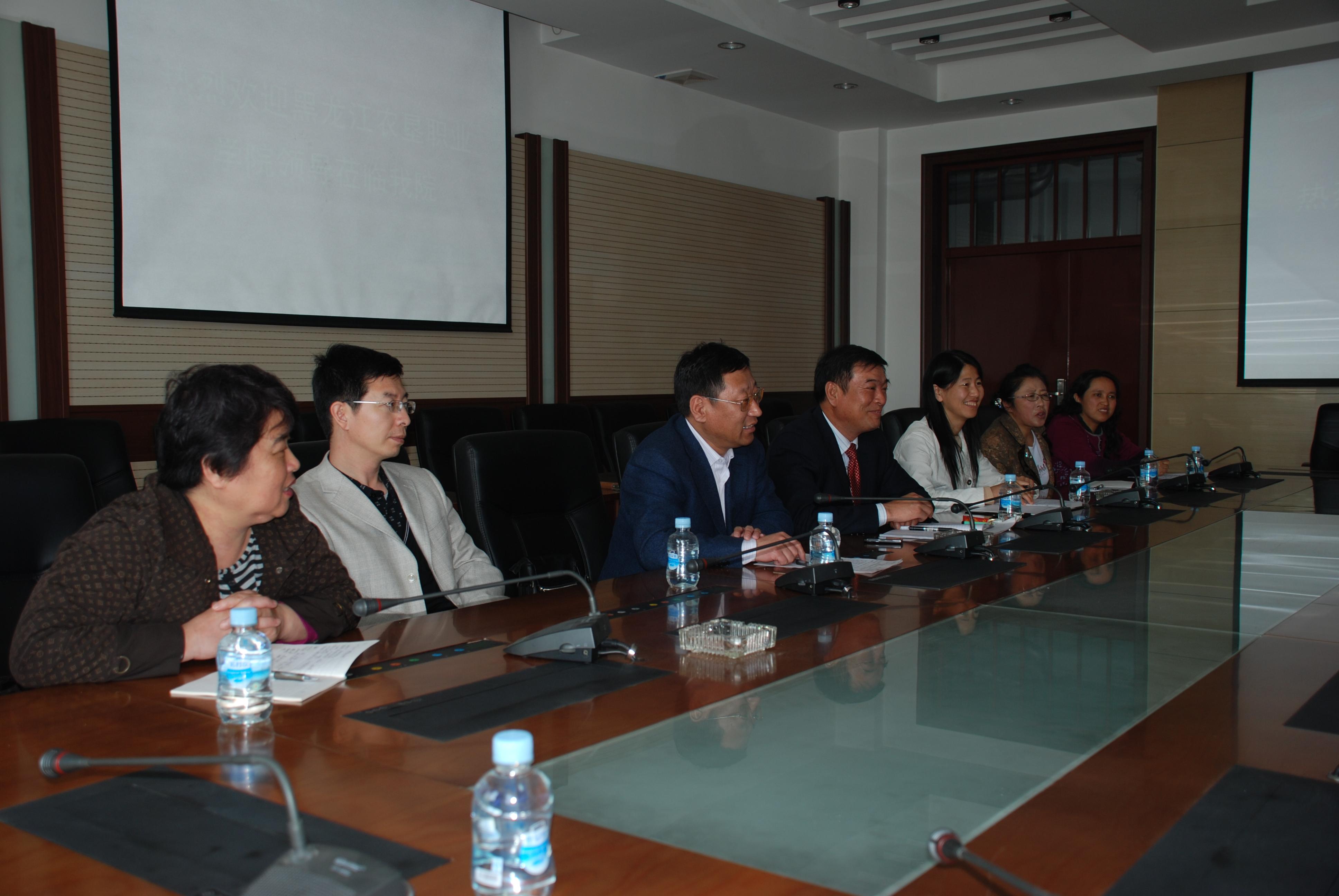 2011年5月23日上午,黑龙江农垦职业学院院长助理李洪亮、科研处处长张文、教务处副处长聂爱林等一行8人到我院就骨干校建设工作进行了考察交流。