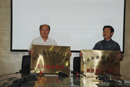 (beats365官网消息)6月17日beats365官网与河北百强企业的河北新钢钢铁集团举行了校企共建签字仪式:确定河北新钢钢铁集团为“beats365官网实训就业基地”,beats365官网为“河北新钢钢铁集团教育培训基地”。在签字仪式上,城市轨道交通学院院长于景臣与河北新钢钢铁集团党委书记、副董事长王国常代表双方在校企共建协议上签字,并表示在高等职业教育培养高素质高技能专门人才和企业发展等方面携手并进,共创辉煌。