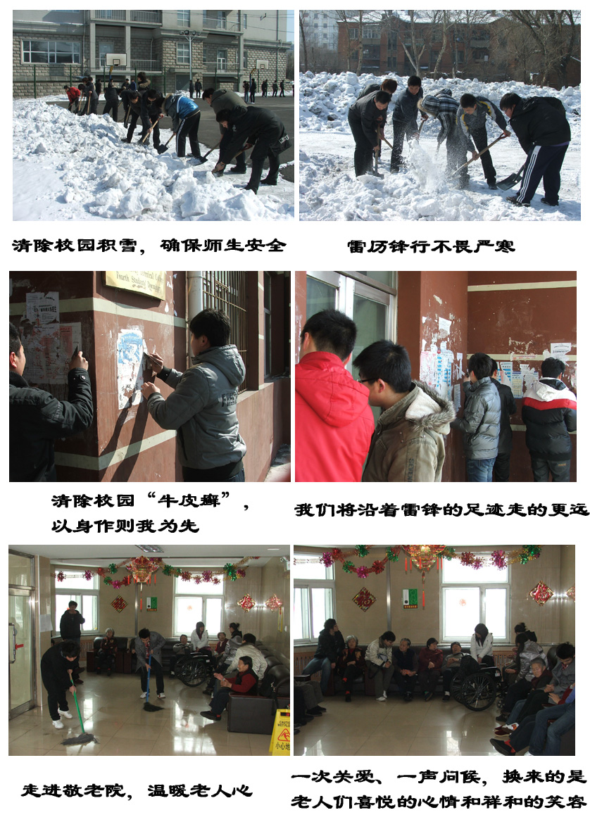 学院新闻 首页 > 新闻中心 > 学院新闻 > 正文 雷厉锋行 校园新风 作者:日期:2010-03-23 ——雷锋月系列活动报道 初春三月,新学期伊始,我院“雷厉锋行、校园新风”雷锋月活动热潮正在上演。为弘扬雷锋精神,增强大学生社会责任感,倡导以德育人的教育理念,学院团委组织开展了形式多样的学雷锋活动。在学生中引起了强烈的反响和深刻的教育意义,使同学们深受雷锋精神的鼓舞与感召。