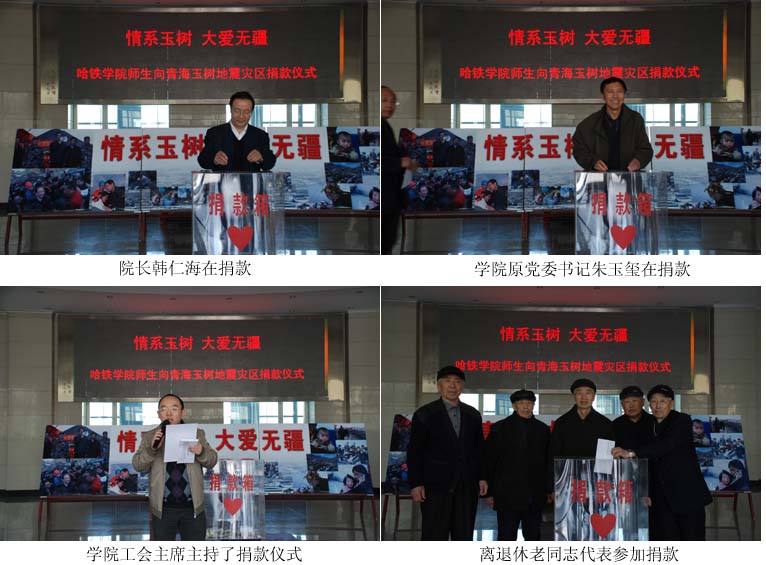 (beats365官网消息) 22日下午,学院在教学综合楼大厅举行题为“情系玉树、大爱无疆”为青海玉树地震灾区捐款活动。学院工会主席李洪涛主持了捐款活动。