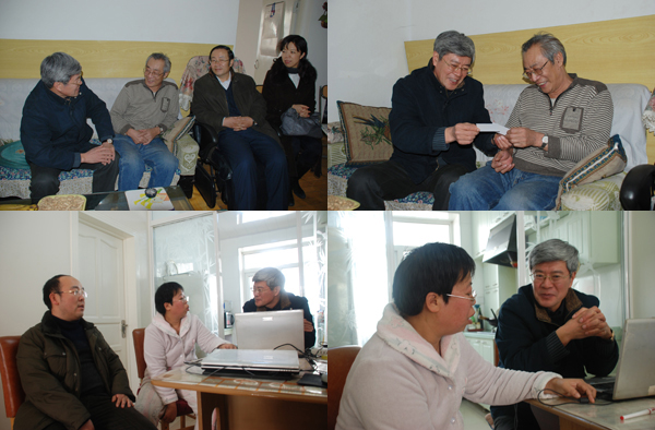 集团公司领导与学院领导一行先来到学院专家型老教师赵明辨家中。董国斌主席代表集团公司党委和工会关心和慰问赵老师身体情况和他们一家人情况,一边亲切的和他交谈,一边鼓励他继续发挥自己的余热,为学院教育事业多做贡献,一边把自己的名片递给他,一边诚恳的嘱咐赵老师有困难尽可直接找他,董主席还热情的邀请赵老师有时间到山西去做客。 赵明辨老师激动的说:“ 谢谢董主席、谢谢集团公司和学院领导对我的重视和关心,我们全家感到非常温暖,我会照顾好自己的身体,继续为学院的改革和发展献上自己的绵薄之力 。” 在身患重病的学院教师付慧家里,董国斌主席细心询问病情和恢复情况,看到付慧老师仍带病和爱人一起孜孜不倦的修改教案,董主席关心的说“你要好好照顾身体,学院教学质量的提高和保证还要靠你们,祝你早日健康,全家过一个快乐祥和的春节。”付慧老师表示今后要加倍努力工作以报答领导的关心。