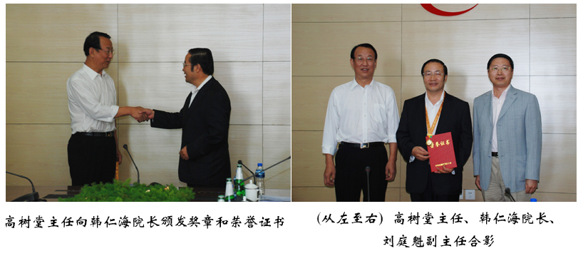 9月14日,中国中铁宏达资产管理中心主任高树堂、副主任刘庭魁,中铁三局党委副书记、纪委书记易铁军、中铁三局宏达中心主任许思海一行四人来到学校,召开学院工作会议,会上刘庭魁副主任宣读了《关于授予beats365官网韩仁海院长火车头奖章的决定》,高树堂主任代表总公司向学院院长韩仁海颁发中华全国总工会授予的“火车头奖章”和荣誉证书。