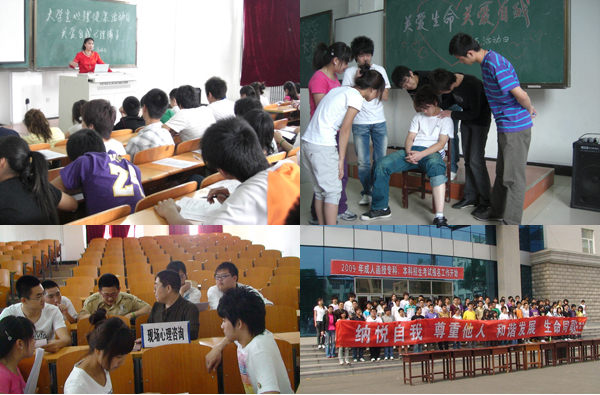 学院新闻 首页 > 新闻中心 > 学院新闻 > 正文 5月25大学生心理健康日活动简讯 作者:日期:2009-05-25 2009年5月25日是全国第十个大学生心理健康日,为提高同学们的心理素质,同时推进我院心理健康教育工作的开展。由心理健康咨询中心和铁道建筑学院联合举办了《纳悦自我 尊重他人 和谐发展 生命同歌》大学生心理健康活动。 活动分别以海报张贴﹑知识宣传﹑心理测试﹑签名活动﹑电影展播﹑心理讲座、现场咨询等多种形式,宣传大学生心理健康的重要性,普及心理健康知识,提醒同学们关注自身心理健康,纳悦自我,尊重他人,和谐发展,生命同歌。 铁道建筑学院团总支 2009年5月25日