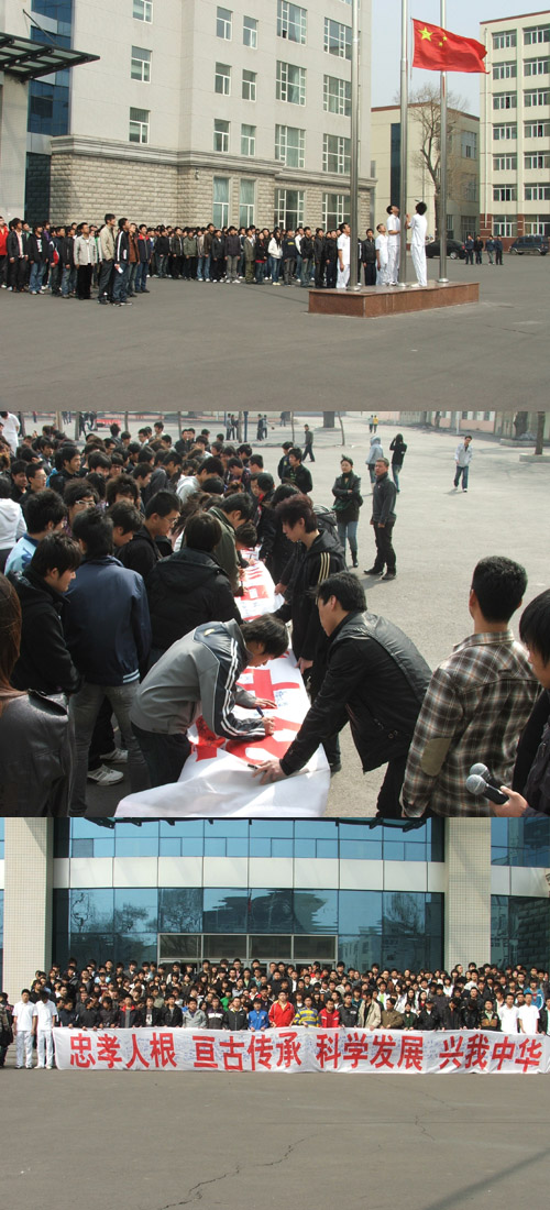 2009年,正值建国六十周年、五四运动九十周年之际,学院团委于4月3日中午,组织我院数百名师生在综合楼前的国旗下进行缅怀革命先烈,弘扬民族精神清明节纪念活动。活动包含四个内容,主持人发表清明致辞《烈士的鲜血不会白流》;升国旗、齐唱《国歌》;为革命先烈默哀3分钟;所有参加活动人员进行“科学发展 兴我中华”宣誓签名。