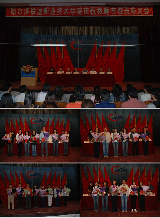 党委副书记、纪委书记王时宣读了“中铁三局集团有限公司给学院发来的贺电;学院副院长翟滨宣读了学院“教师节”评优、评先表彰决定;副院长邹德奎宣读了获得省级和院级教学名师的表彰决定;副院长马雷宣读获得国家级精品课和获得省级精品课负责人的表彰决定;学院工会主席上官凤宣读了学院首届CAI教学效果大赛的表彰决定;教师代表夏芳和学生代表姚雪妍在大会上发言。