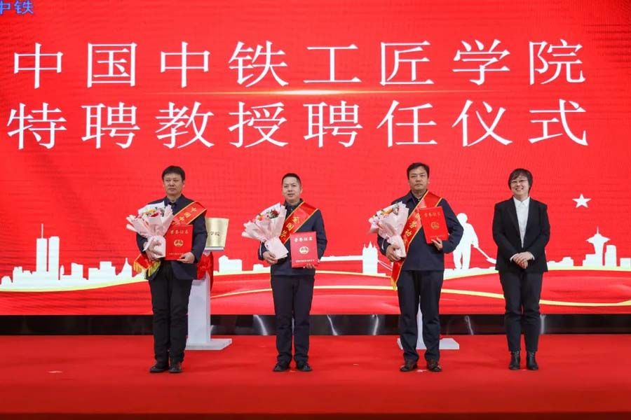 仪式现场聘任全国劳动模范、中铁一局五公司精测公司副经理白芝勇,全国劳动模范、盾构及掘进技术国家重点实验室执行主任孙振川,中国中铁优秀工匠、中央企业技术能手罗超等为中国中铁工匠学院的劳模工匠特聘教授,李颖院长为受聘教授颁发聘书,劳模工匠代表现场进行了事迹宣讲。