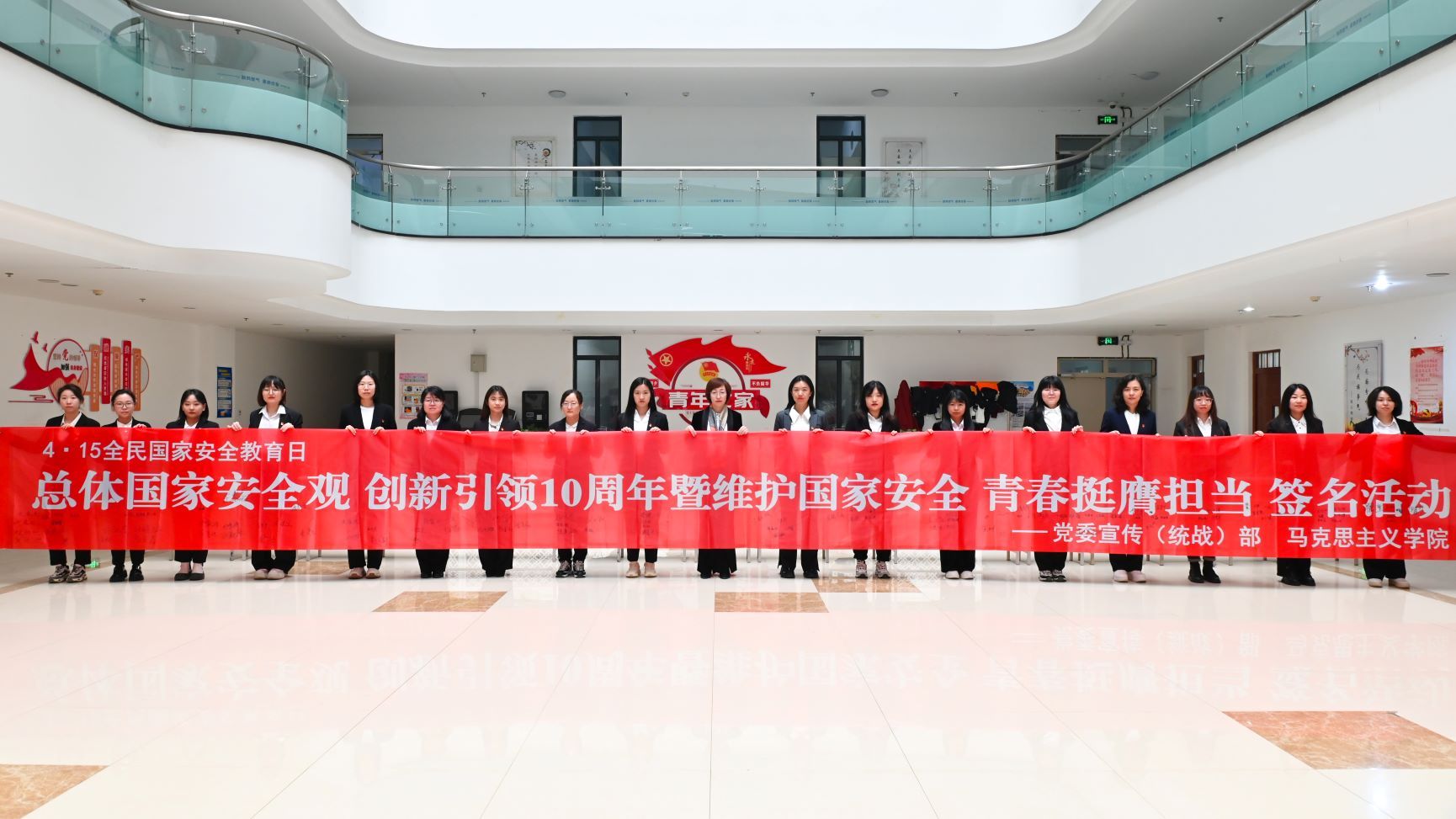 今年的4月15日,是习近平总书记提出总体国家安全观十周年,也是第九个全民国家安全教育日。马克思主义学院深入贯彻落实习近平总书记关于加强国家安全教育的重要指示精神,4月15日,按照学院的统一部署,联合党委宣传(统战)部共同开展了“总体国家安全观 创新引领10周年”暨“维护国家安全 青春挺膺担当”主题活动。