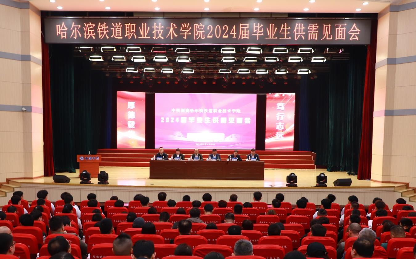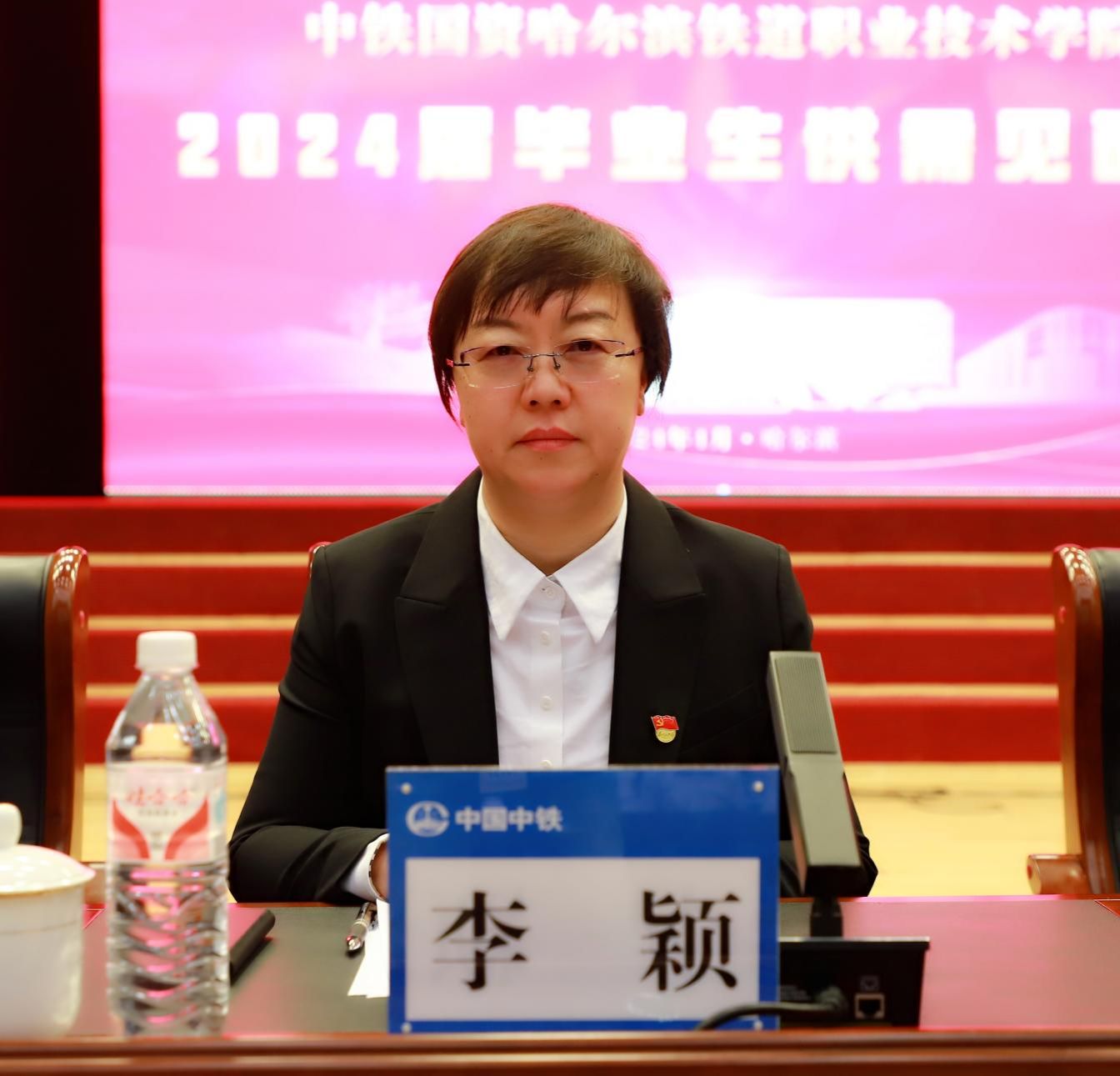 李颖在致辞中表示,近年来,在各级领导的关怀和支持下,在各用人单位的关心和帮助下,学院坚持立足“两铁一路”,服务国家“交通强国”战略和中国轨道交通“走出去”的办学宗旨,始终扎根铁路行业沃土,铁履铿锵,坚持走特色办学之路,用奋进之笔、铁色之墨描绘了花开千树、硕果盈枝的壮丽画卷,办学水平与影响力逐年提升。学院坚持把毕业生就业工作当作学院持续发展的生命线,领导班子分片区带队访企拓岗促就业、优秀毕业生事迹宣讲、企业推介宣讲会、多场次线上线下招聘会,打出了一套就业组合拳。多年来学院累计为社会输送了8万余名高素质技术技能人才,哪里有铁路,哪里就有哈铁院的毕业生,交通强国,铁路先行,哈铁院人从未缺席。希望同学们抓住机遇、抢占先机,珍惜机会、积极就业。