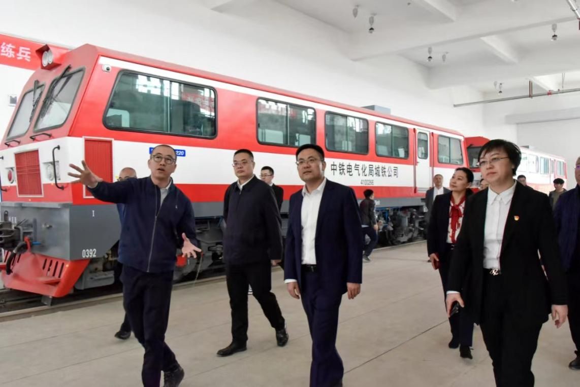 薛书记一行先后参观考察了实训车站的信号控制室、计算机联锁实训室、室外信号设备;铁道机车库的机车车辆生产性实训区、动车组转向架实训区等;产教融合大楼城轨智能运输实训室、高铁信号综合维修实训室等。实地观摩了智慧车站及站台实训装置、应急处置装备、高铁信号综合维修现场操作演示及在城轨正线联锁系统下地铁屏蔽门等现场设备联锁演示。李颖书记陪同考察调研时详细介绍了西区产教融合实训基地的建设成果,并汇报了西区道路、绿化配套建设计划及后期机车库改扩建计划。