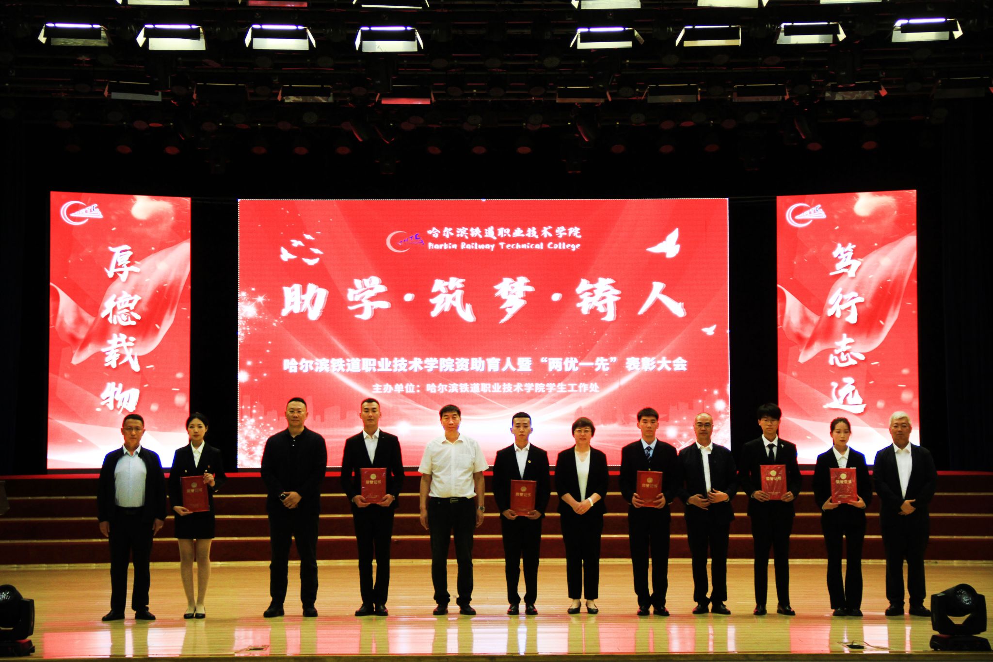 助学,是为广大求知学子点亮了一盏心灯;筑梦,能让漫漫追梦之途充满奋进力量;铸人,是将奋勇争先的担当精神代代传承。本次“助学•筑梦•铸人——资助育人暨‘两优一先’表彰大会”明确了我校资助育人的方向,将进一步推动我校资助工作的发展。同时也为全体同学锚定前进方向,希望同学们能够坚定理想信念,努力锤炼技能,争当时代青年。