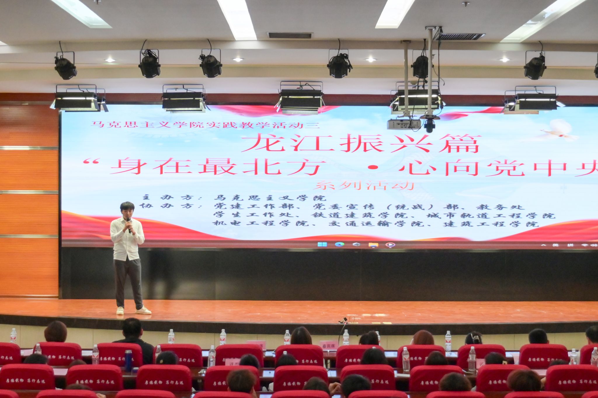 为迎接中华人民共和国成立75周年,全面贯彻落实党的二十大精神和习近平新时代中国特色社会主义思想,扎实推动习近平总书记对学校思政课建设的重要指示和全国新时代学校思政课建设推进会会议精神在学院落地生效。在学院的统一部署下,在党建工作部、党委宣传(统战)部、教务处、学生工作处、图书馆、铁道建筑学院、城市轨道工程学院、机电工程学院、交通运输学院、建筑工程学院等部门和分院的大力支持下,6月13日下午,马克思主义学院开展“龙江振兴篇--身在最北方 心向党中央”系列实践活动暨党支部主题党日活动。
