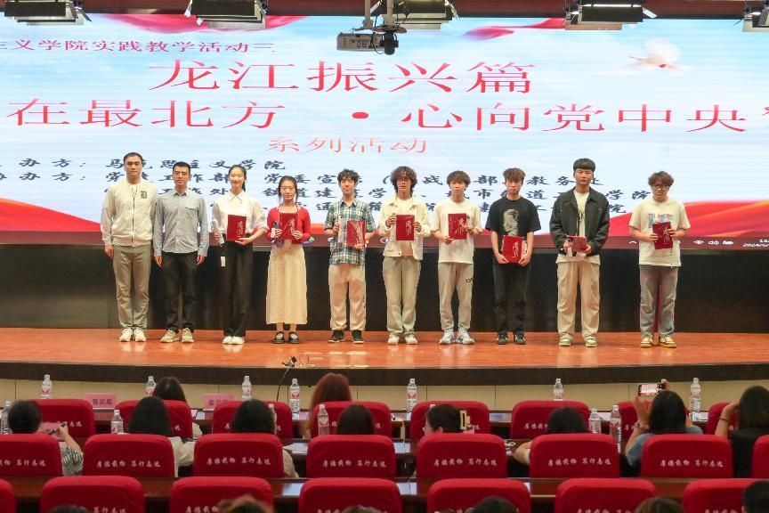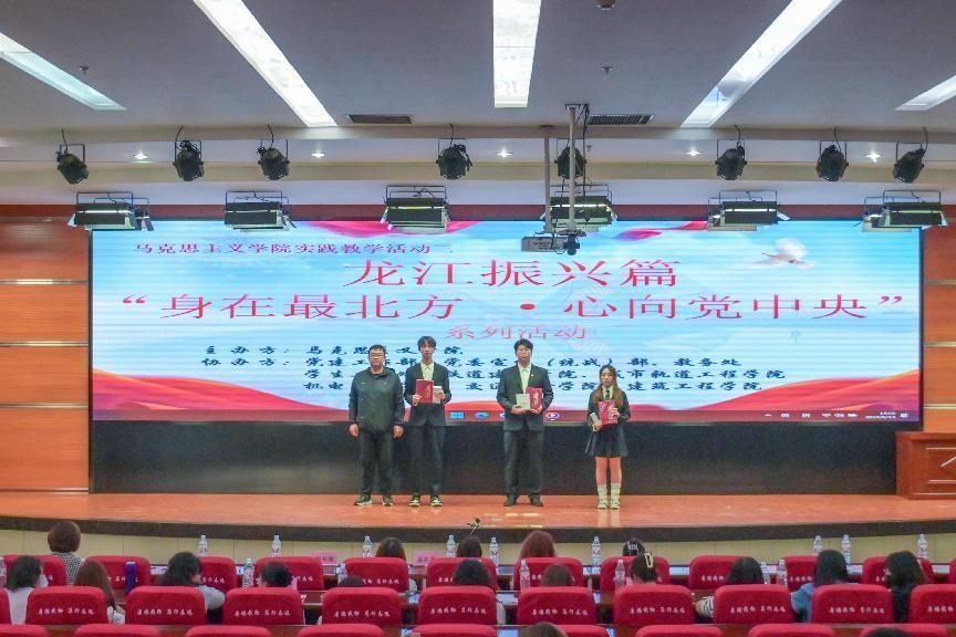 本次活动形式三:“龙江振兴篇--身在最北方 心向党中央”之“龙江之美短视频”活动。经过选拔,此项活动有 16 组选手进入决赛。分别是王子昂团队的《游戏话龙江》、许智程的《热血沃黑土,最美黑龙江》荣获一等奖;时洋团队的《冰魂雪韵.北国风光》、翟亿锋的《建设大美龙江,传播生态环保正能量》、田泽润团队的《赏北国风光,游醉美龙江》、乔禹龙的《生笙盛圣》荣获二等奖;葛蕊团队的《龙江之美的生命赞歌》、陈立松团队的《龙江之美:锦绣山河颂》、邹佳鑫团队的《看尽北国好风光》、赵文博的《我的家乡黑龙江》、王敬博团队的《大美黑龙江》荣获三等奖;、刘毅团队《繁华背后的静思》、盛富强团队的《陨落的红星–李兆麟》、韩福林团队的《龙江振兴在路上》、张少涵团队的《龙江之美》、叶馨怡团队的《看多彩龙江,迎大美尔滨》荣获优秀奖。短视频展播以新颖的形式带来了强烈的感染力。许智程的优秀展播作品《热血沃黑土,最美黑龙江》荣获一等奖,在展播现场分享了他是一名来自南方学生,因思政课上对老师所说的“北大荒”一词产生兴趣,带着疑问追寻答案,最终辗转两地得到了解答;王子昂团队的优秀展播作品《游戏话龙江》,每位成员化身游戏人物从校园出发探索龙江之美,第一站前往的是位于哈尔滨景点(中央大街、松花江、防洪纪念塔、索菲亚教堂、哈尔滨大剧院)实地体验龙江之美。第二站前往的是大庆,现场体验龙江四大精神之铁人精神。动态的画面和声音,吸引着现场观众的目光,同学们纷纷表示形式新颖,引起大家深刻的共鸣,也让红色精神以更贴近时代的方式深入到我们每个人的心中。