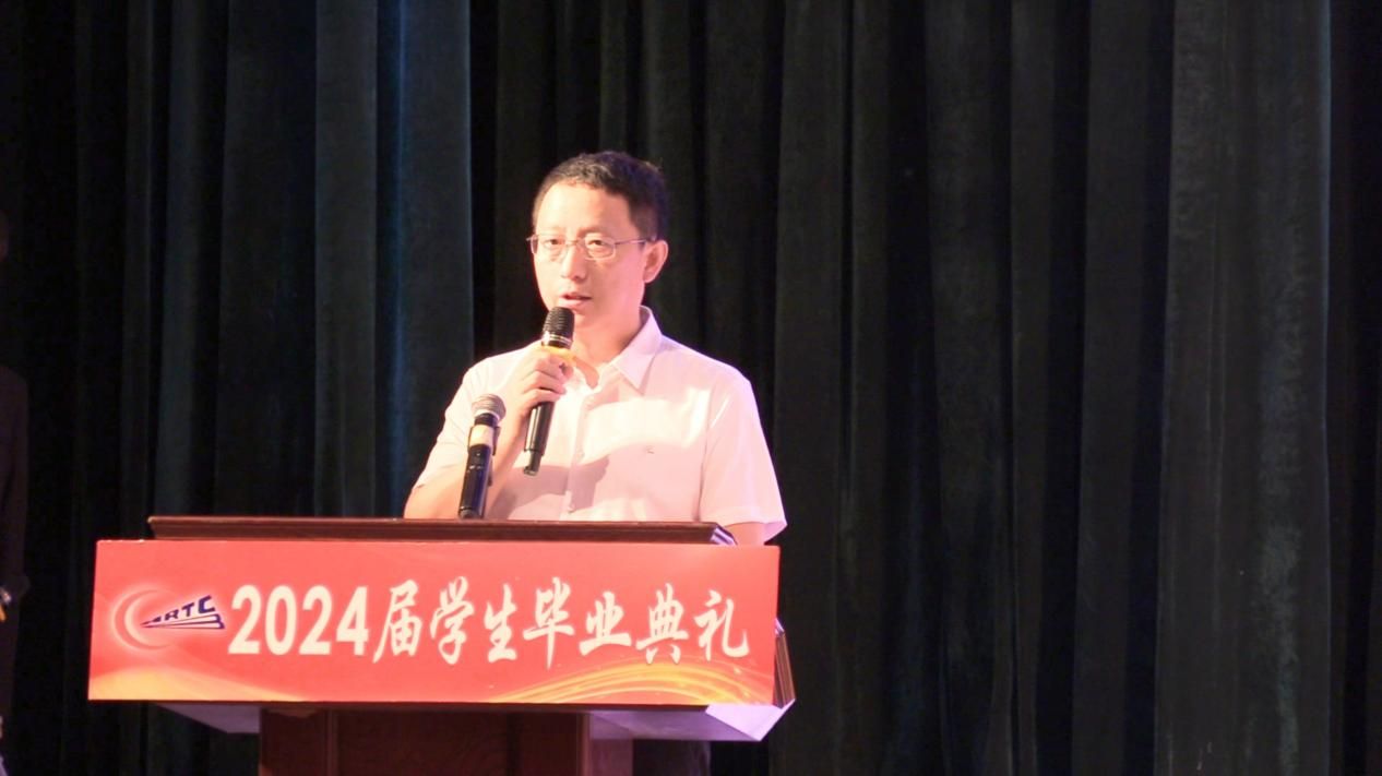学院院长孟维军在典礼上讲话,他代表学院向同学们顺利完成学业、即将开启人生新篇章表示热烈祝贺,向辛勤培育、关心支持同学们的老师及所有为同学们付出辛劳的师生员工表示衷心的感谢。