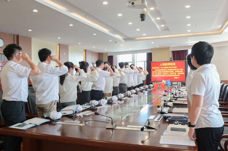 新入职教师庄严宣誓,励志做一名光荣的人民教师,为党的教育事业贡献自己全部的智慧和力量。