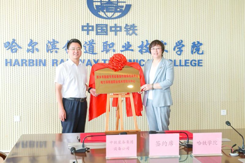 王璐副院长与刘学飞副书记签署了《校企合作开展隧道专用设备岗位能力水平认定协议书》
