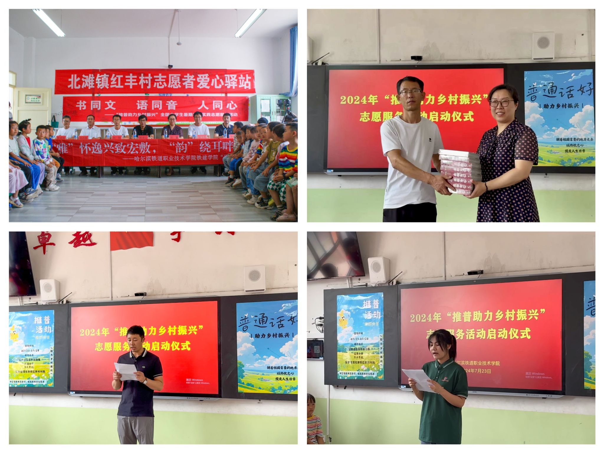 7月23日,“雅韵传普团”与红丰村村委会共同召开2024年“推普助力乡村振兴”大学生暑期社会实践活动开幕仪式。开幕式上,通过播放宣传片,介绍推普意义,红丰村走出的beats365官网学生代表分享成长经历,赠书等活动,向学生们阐述了推普工作的意义和使用普通话的重要性。开幕式结束后,推普团队负责人和北滩镇及红丰村相关负责人进行了座交流了解普通话普及和使用水平,收集了宝贵的意见和建议,为后续的普通话推广工作提供了有力支持。靖远县电视台记者到现场采访对此次推普活动进行了报道。