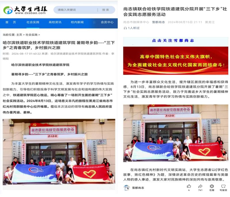 此次活动多家媒体进行了相关报道:尚志党建、尚志市融媒体中心、雪都尚志、大学生网报、铁建青春派等平台进行了宣传报道。