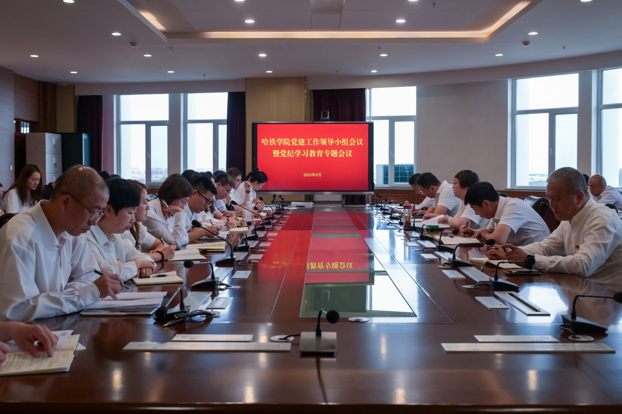 9月12日下午,学院党委召开党建工作领导小组会议暨党纪学习教育专题会议,传达学习习近平总书记关于党纪学习教育的重要指示及中央党的建设工作领导小组会议精神,学习贯彻国资委党委和中国中铁、中铁国资党委有关会议精神,结合实际,总结学院党委党纪学习教育工作,巩固深化党纪学习教育成果,对学院推动党的纪律教育常态化长效化进行安排,切实把党纪学习教育成果转化为推动学院高质量发展的强大动力。学院领导班子成员、党纪学习教育领导小组办公室成员、基层党组织书记参加会议,学院党委书记李颖出席会议并讲话。