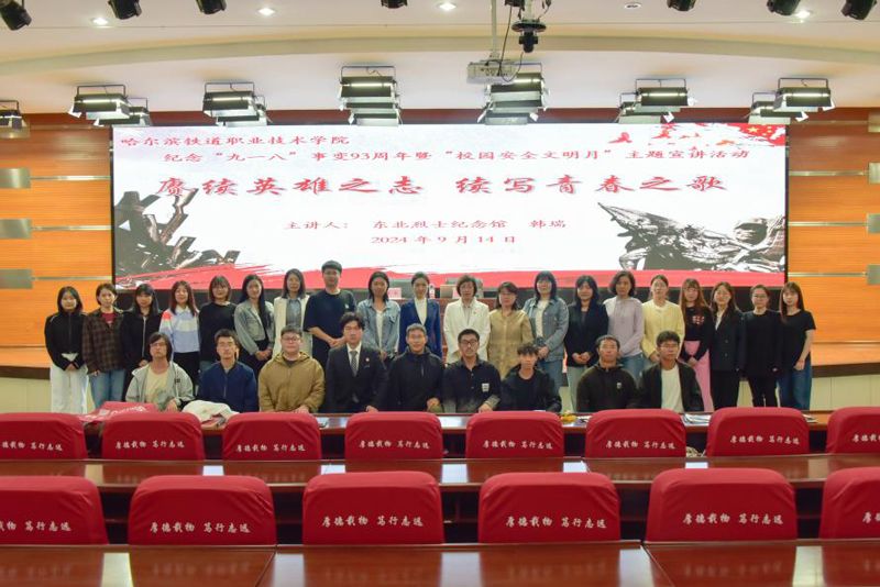为贯彻落实教育部办公厅等四部门《关于开展全国高校“传承红色基因、学思践悟中国共产党人精神谱系”宣传教育的通知》精神,进一步弘扬龙江优秀精神,结合学院“校园安全文明月”活动实施方案,在学院党委的统一部署下,9月14日下午,纪念“九一八事变”93周年暨“校园安全文明月”主题宣讲活动,在图书馆报告厅举行。