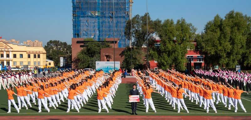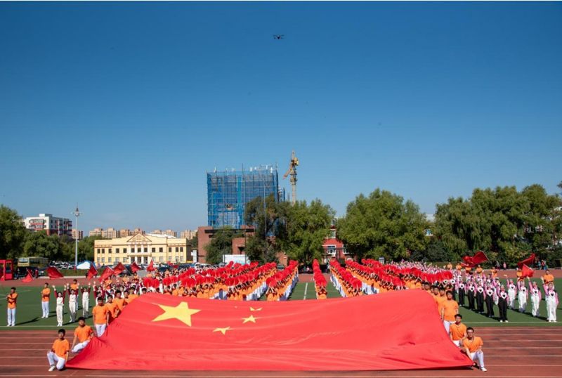 比赛环节中他们巧妙改编《同心同梦》舞蹈曲目,以三色扇子为笔,书写“冰雪同梦,亚洲同心”的亚冬会主题;以嘹亮的口号,预祝亚冬盛会圆满成功。二十位红旗手共同撑起一面鲜艳的五星红旗走向比赛场地将比赛推向高潮,国盛世昌,在同学们齐声祝福伟大祖国母亲生日快乐的氛围中,比赛圆满完赛。
