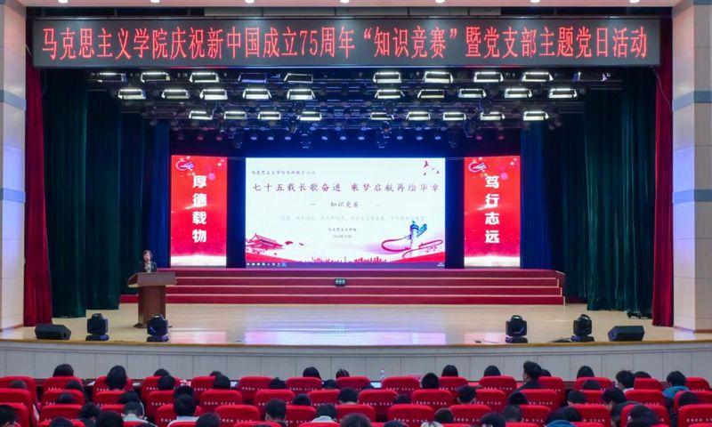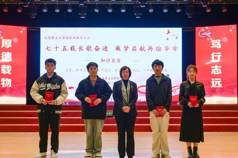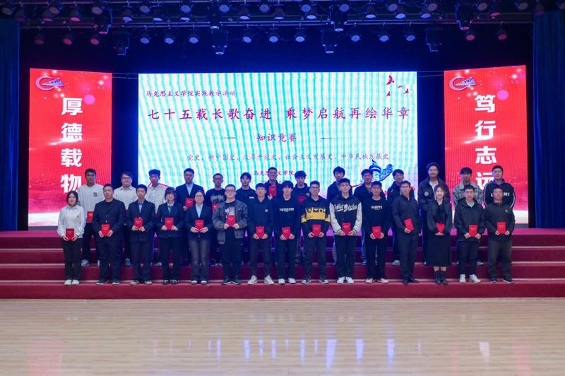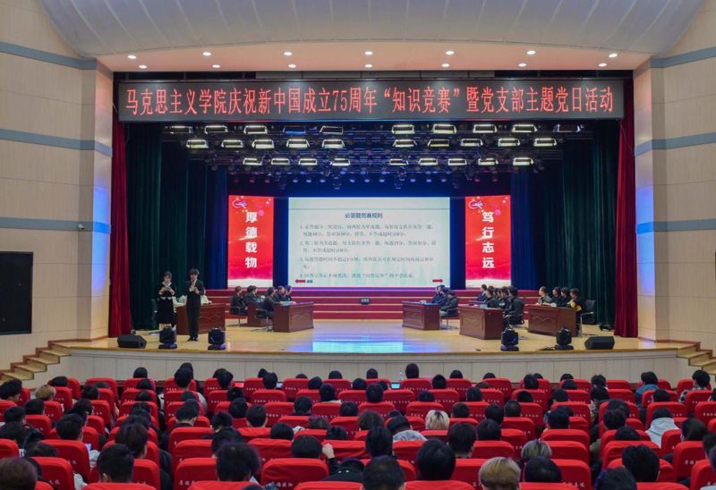 为深入学习贯彻习近平新时代中国特色社会主义思想,全面落实党的二十大、二十届二中、三中全会精神和全国教育大会精神,在学院党委的统一部署下,党建工作部、党委宣传(统战)部大力支持,10月17日下午,马克思主义学院开展了庆祝新中国成立75周年“七十五载长歌奋进,乘梦起航再绘华章——知识竞赛决赛暨党支部主题党日活动”。本次活动也是落实学院党委基层党组织党建品牌培育的工作要求,坚持党建与教学工作深度融合,实现同频共振。