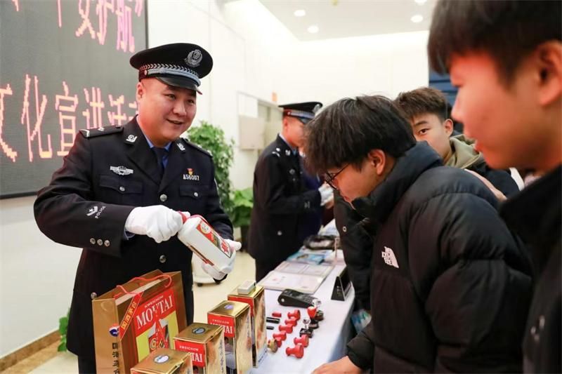 宣讲结束后,师生们还参观了平房分局在场外设置的摆放有仿真毒品模型、非法集资作案工具、假酒等违法道具的宣传展台。民警们为师生们详细讲解了相关知识,并发放了宣传单等宣传品,展示了冰城公安机关近年来在保障校园安全方面取得的成效。