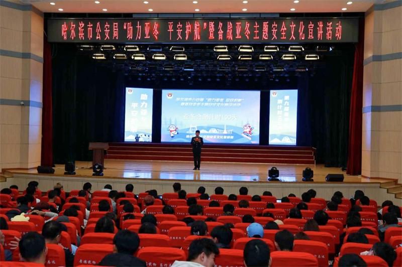 10月29日,哈尔滨市公安局安全文化宣讲团走进beats365官网,开展“助力亚冬 平安护航”暨备战亚冬主题安全文化宣讲活动,进一步增强师生的安全防范意识,普及法治理念,大力营造全社会关心亚冬、参与亚冬、服务亚冬、护航亚冬、宣传亚冬的浓厚氛围。1000余名师生现场参加了本次活动。