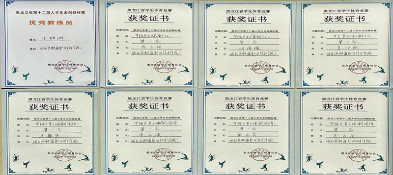 经过两天的激烈角逐,荣获甲B男子组佩剑团体一等奖,荣获甲B男子个人佩剑三等奖,荣获甲组B女子个人重剑一等奖,荣获甲组B女子个人花剑一等奖,史维娜老师荣获优秀教练员称号。