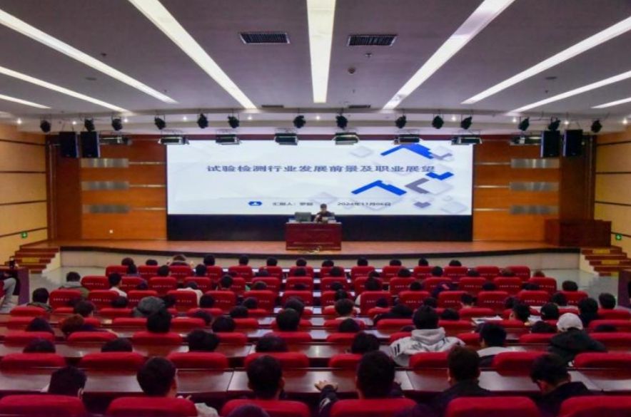 在图书馆报告厅,罗超以“试验检测行业发展前景及职业展望”为题为师生作专题报告。从试验检测行业发展情况及未来趋势预测、检测工作性质以及在质量控制中的作用、数字化信息化在试验检测领域的应用、土木类专业学生职业规划建议四个方面分享自身经验与看法。