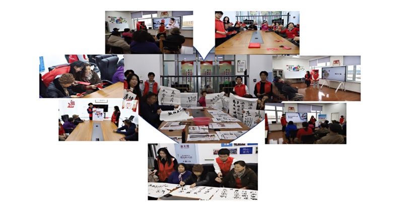 星梦志愿者服务队的成员们在荣盛社区与社区老人们共同进行了剪纸、书法、绘画等互动活动。