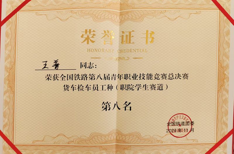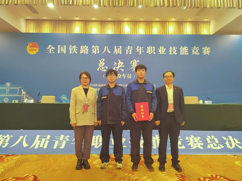 近日,由全国铁道团委、国铁集团劳卫部、机辆部、铁路总工会主办的全国铁路第八届青年职业技能竞赛货车检车员、铁路机车电工决赛先后在石家庄、重庆落下帷幕。我院杨巍、孟艺雯、金英明指导货车检车员赛项参赛选手王普获得职院赛道第八名;王慎轩、李炳彤指导铁路机车电工赛项参赛选手殷嘉伟获得职院赛道第十二名。